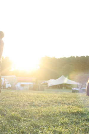 A whole world is tucked into two fields, trimmed with watering holes and fairground rides. Gaggles of people sway from place to place, crumpling into piles in front of the main stage, straight from the beach. Pints in hand, jumpers on and ready to fade into the evening.