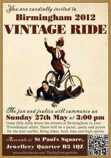 A reader alerted us to this event that looks like a fun hybrid of a fancy-dress party and a bike ride, and we figure there’s no way this can’t be fun! So if you’re around Birmingham on May 27th, check out the Big Vintage Ride! Make sure you attend in the right fashion though! All deets below: