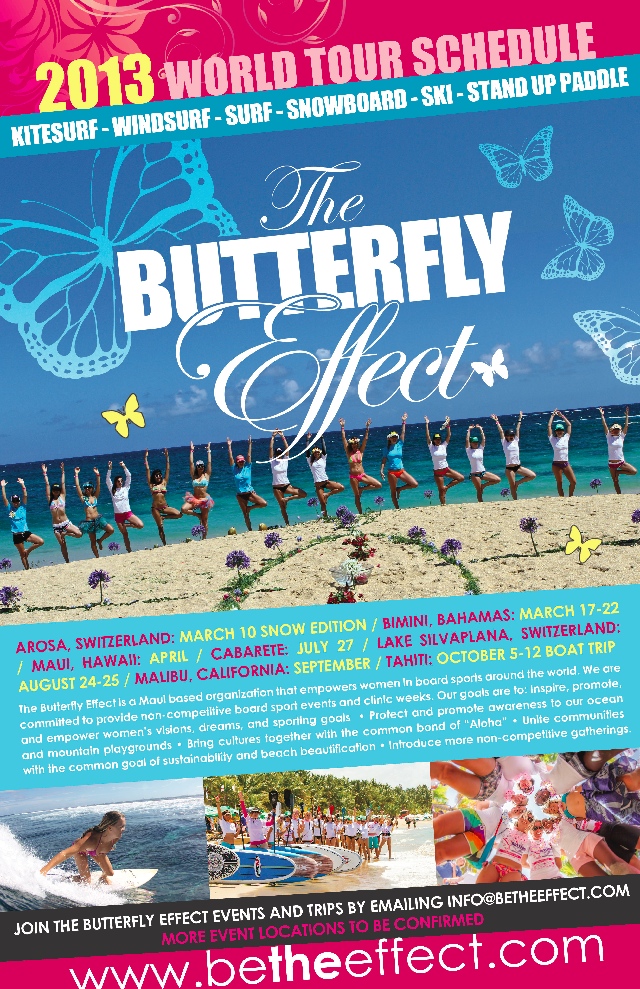 This grass-roots event that started with only a handful of women on the north shore of Maui in 2007 has now grown into an international water women’s movement, surpassing all expectations than ever imagined. Thanks to the support from each and every one of you, The Butterfly Effect continues to empower women and communities through non-competitive water sport events, trips, and community give-back sessions. We are hosting many BE events in dream locations around the world, including the Bahamas and Tahiti! We can’t wait for you and your friends to be part of it! Grab your bikini and get on board!