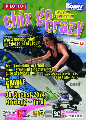 You must be sleeping under a maaassive rock or on the other side of the moon to have missed the recent surge and growth in girls skateboarding but the Chix Go Crazy all girls bowl contest in the Cradle Skatepark in Brixlegg, Austria (right on the way to the infamous Zillertal valley that winter shred heads will know more than well) has actually been around for a while!