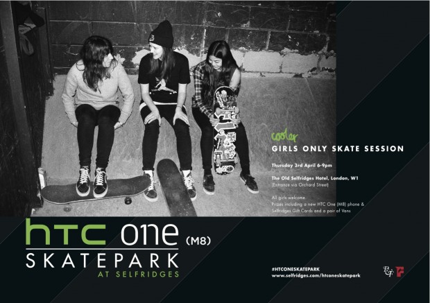 Cooler girls only skate session at the HTC One Skatepark at Selfridges, London next Thursday 3rd April