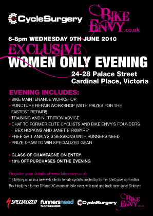 All too often bike shops are bulging with testosterone, which can be a little intimidating for us girls. So in a bid to readdress the balance and make their stores more welcoming, CycleSurgery teamed up with BikeEnvy.co.uk to host their first ‘women only’ evening.
