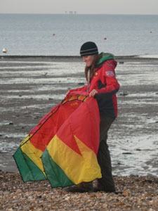 We were sat in the Bongo sheltering from the howling winds and torrential rain on West Shore when we got chatting about The Arctic Foxes and their record breaking mission to become the first British, all-woman team to cross the Greenland ice sheet. I had seen a news item on Kite Worlds web site saying they were doing power kiting taster sessions for women and that’s when we decided to contact them and see if we could help. It was all confirmed and we got onto Flexifoil who sent us a pink buzz and BIG buzz from their fantastic Punk range of kites, these were the perfect kites for this event as £10 is donated to Breast Cancer Awareness for each kite sold from Flexifoils Punk range.