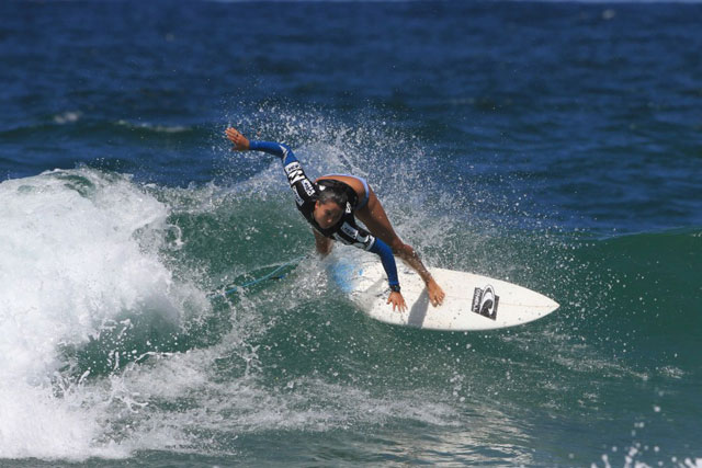 Laura Enever was looking like exiting the event with a 5th place finish in her Quarterfinal against Pauline Ado, she was left needing a decent score as the ocean went flat in the last five minutes. But Enever waited patiently and with a mere 14 seconds on the clock she stood up on a nice looking left-hander and launched into a series of sharp turns, easily netting the required score. “There was a part of me thinking this might be the end,” she said afterwards, “but then I thought – it’s never over, you can catch a wave with one second on the clock and get the score. I knew I had to find something and when that wave popped up and I thought this is it, this is the one. I’m excited to be into the Semis and to be able to surf on Finals day this weekend.”