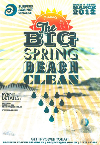 The Big Spring Beach Clean will take place between 11am and 2pm on 24th & 25th March 2012, so get ready to roll up your sleeves for UK beaches. For more information on confirmed locations or to register your event please contact Steve Hagan on 01872 555 950 or email [email protected]