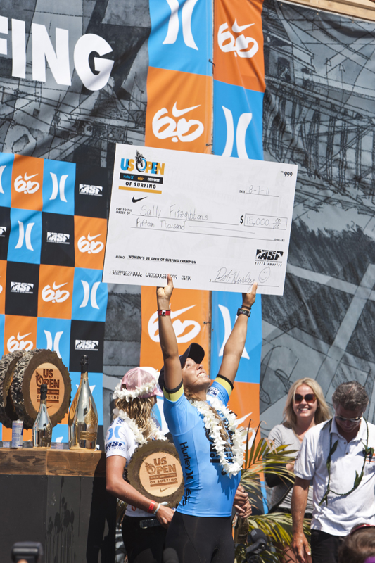 Under blue skies and in front of monster crowds, Australia’s Sally Fitzgibbons beat Lakey Peterson in the US Open of Surfing Final at Huntington Beach, California with combined scores of 14.23 to 12.40. She looked in control throughout the contest and it will be some consolation to the 20-year-old after narrowly losing the title to Carissa Moore at the Roxy Pro, Biarritz earlier this month.