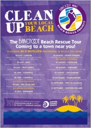 To help make a difference at your local beach get involved with the tour (dates and locations below). It will take around 3 hours from 2-5pm, and volunteers will get a free tee, plus an SAS/Barefoot hosted barbie with samples of Barefoot wine. Surf music star Ben Howard will be playing some thank you gigs for lucky volunteers at Porthowan, Kingsbarn and Whitley Bay.