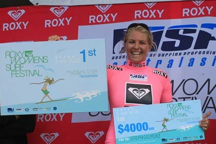 Teenage sensation Stephanie Gilmore (Kingscliff, NSW, Aus), took her surfing to new levels to win back to back Roxy Pro WQS titles at Phillip Island this weekend defeating fellow world ranked competitor Melanie Bartels (Oahu, Haw) in a one sided affair.