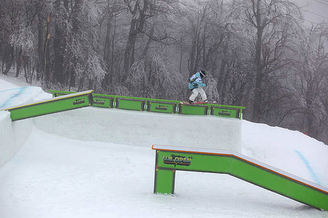But also the pipe was sessioned big time by the girls. As usual Kelly put on the biggest show of all starting her run with a 9 indy grab, followed by a backside 5 mute and the only stomped 10! Following her closely was fellow countrywoman Hannah Teter, who fired back with a frontside 9 stalefish, backside 5 melon and frontside 7 stalefish.