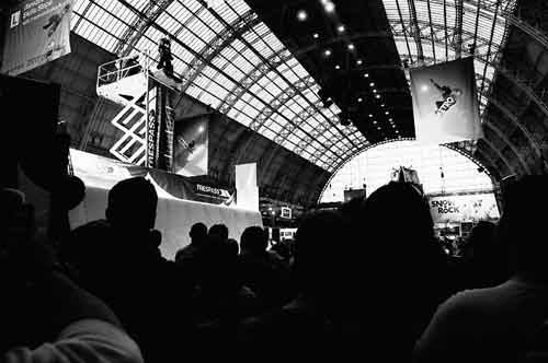 All in all the Ski and Snowboard Show is a pretty tight event, aimed at the holiday-making skier and snowboarder, the show caters to their one and many needs whilst providing a fantastic forum for industry folk to drink, drink, drink, talk, talk, talk and hustle, hustle, hustle. From buying the latest equipment (having the opportunity to check all the hottest product in one massive winter sports shopping mall) to sampling local schnapps and Weiner schnitzel or testing your skills on a mini mini snowflex slope to watching the freshest UK talent showing you how to do it better.