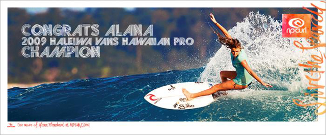 Although the Vans Hawaiian Pro is an ASP Specialty event, which doesn’t provide ASP World Tour or WQS points, the win still catapulted some much-needed momentum for Alana heading into Sunset and Maui with full intentions of 2010 Dream Tour re-qualification.