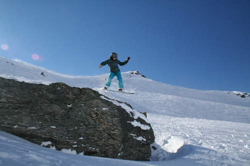 The great thing about this programme is that the groups are small and the coach’s top notch. Our group was paired up with Anaiis one of the Remarkables snowboarding instructors and Callie Conaghan – a semi pro boarder. With help like this you can’t help but improve your technique, from gently pointing out the obvious – bend your knees – to the ‘eureka’ moment when I discovered that if I look at the snow while turning in quick succession I’ll probably end up eating snow – duh. Why didn’t I realise that before?!
