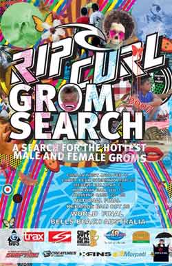 Rip Curl is forever searching for the best way to look after the most important surfers in the world… the grommets. The Rip Curl GromSearch is a global series of surfing events in which surfers under 17 years of age can have a go at competing on their local beach. The overall winner of the ‘under 17’ division of each national series will go to the World Final in Australia held in April 2008 during the Rip Curl Pro WCT event in Bells Beach.