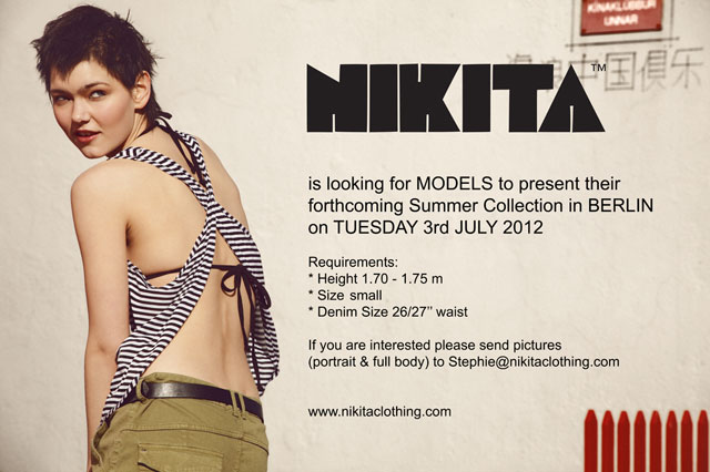 Nikita is searching for new faces / models to showcase the forthcoming SS13 collection in Berlin on 3rd July 2012! Are you a girl who rides and fancies to get on the runway? If so (and you meet the criteria specified above), send your application to [email protected] and you might be invited to the casting… Good luck!