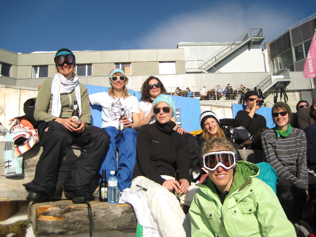 After wonderful powderland it was now time to do what we came for – kill the park! And oh yes, we did, not only the kicker but also the flat box, the kinked down box and even a rail were not safe from the wild girlie campers whirling through the park…