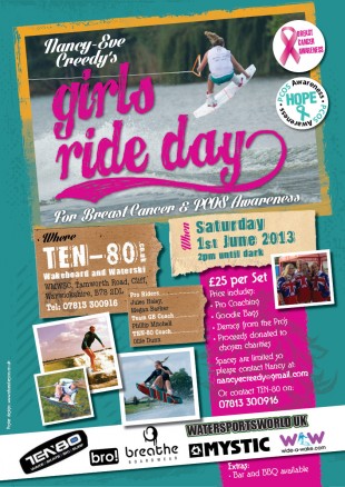 You enjoy riding with like minded females and could do with a bit of karma-pimping? Then join the Girls Ride Day for Breast Cancer and PCOS Awareness at the West Midlands Water Ski Center near Tamworth on Saturday, June 1st 2013 from 2pm till dark.