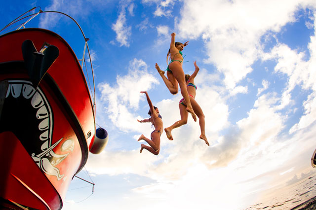 Despite the girls’ high speed high pressure lives; Steph World Champion and media icon, Alana Blanchard a popular number on the media circus, Bethany pro surfer AND Hollywood starlet, and Tyler youngest winner of an ASP World Tour; take them out to the sparkling seas and strand them on a boat with only surf, guitars and swimming for entertainment and the group come into their own.