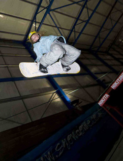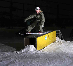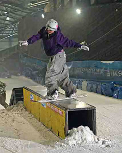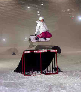 Emily Park then picked up a nice Nikita hoodie for her nose-slide across the A-frame. Skier Amber Conners proceeded to hit that rail with such speed she made boys amongst us whimper! That chick’s got style. Lindsay Ashdown rose to the next challenge of boardsliding the A-frame, winning herself a pair of Oakley goggles, while Anna Barlett rocked the rail so hard she was awarded a nice Vans wallet for her efforts. Moving down to the gas pipe, Martin Hennesy launched off the kicker with a front-flip worthy of some Oakley kit, whilst Helen Fox was awarded a Ruroc helmet to protect her new shining black eye from another gas pipe encounter. George Wolly won himself a pair of Vans snow-boots for his consistent styleee spins across the gas pipe whilst Joe Sandy was awarded the Avalaan style award for setting the benchmark for what great style is all about. Vicky Pullen and Becca Richardson dug deep in their bag of tricks throwing down consistent moves all night and Kirsty Smith left with a Nikita top for her mad jibbing skills. With all the progression going on around me, a slight touch of jealousy plucked my heart-strings… I was especially inspired by Lindsay Ashdown’s 270 off the gas pipe… that is my kind of riding!
