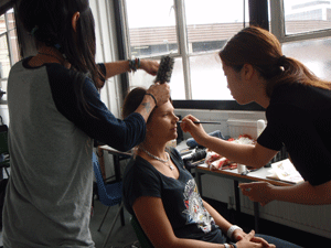 “Go extreme or go home” was the quote of the day, from the girl herself. And that pretty much sums up Cheryl Maas. She was stoked on the shoot, which is for our Horror issue, loving the hair and makeup and up for trying anything…even green hair.