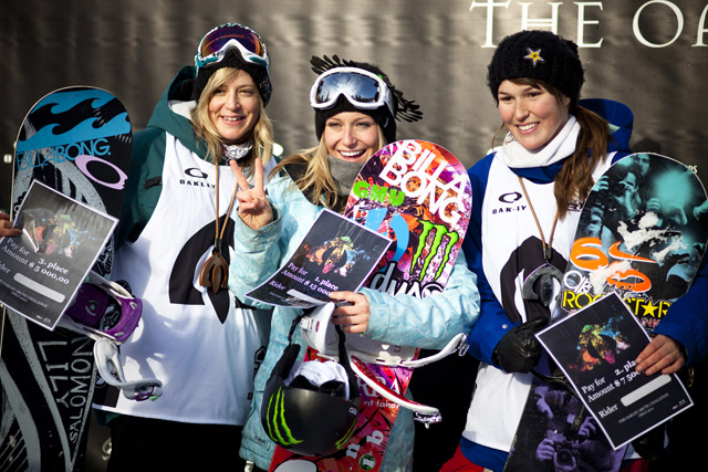 She ruled the slopestyle course with her signature style and is now in an excellent position to take the 2010/11 Swatch TTR World Tour title after her win in Oslo. She won with a run including a noseslide, 50-50 to backside 180, a huge switch backside 540, backside 360, tailslide to 270 out and ended her run with a stylish backside 540. Behind Jamie was Canadian Spencer O’Brien, who put down a very smooth run as well and British rider Jenny Jones honed her veteran skills on the slopestyle course to take third place.