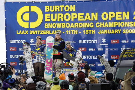 Today is the final day of the 2008 BEO and will be packed with action, including the men’s and women’s halfpipe finals, the BEO male and female overall rider award ceremony and the latest TTR Ranking List presented by Swatch. The male and female rider with the best scores from slopestyle and halfpipe finals will go home with the keys to a new Suzuki Grand Vitara Freeride car.