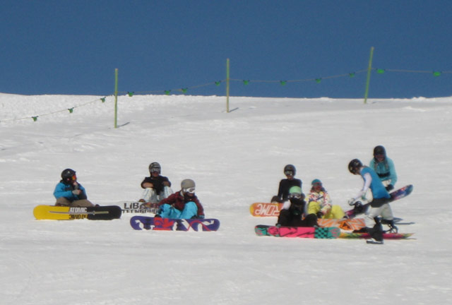 Not even swollen knees, bruises or infected blisters from new boots could stop any of the girls hiking the kicker again and again – and again. Forget girly whining, chicks are freaking hardcore these days! Unfortunately hardcore was also what was going on in the Riders Palace on the last two nights: mega techno party in the lobby right next to our floor! Of course snow girls like to party hard too – but not if you only got one last day on the mountain together left. So instead we postponed the party to Saturday night – at least for those who were still able to move their legs after a week of full on shredding and could still keep their eyes open after the involuntary indirect partying of the previous night.