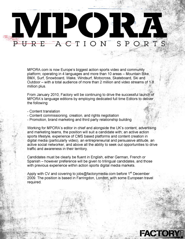 MPORA recently teamed up with Nissan Sports Adventure to run a film editing competition. The 10 final films we chose are now up on Eurosport’s...