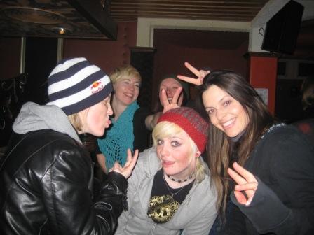 The day was not to finish here as Maude did a great job organising a party for all the girls to celebrate our efforts in the comp. So after Gilly and Laura had collected all their prizes we headed back to our quaint Swiss apartment and got ready for our night in Switzerland! After a meal of spaghetti we headed downstairs for the disco where we were giving each other stupid dares to do! Mine were easy, ask for numbers, get free drinks and dance with Swiss men – I did not say that these dares were nothing compared to taking part in the comp in a white out!