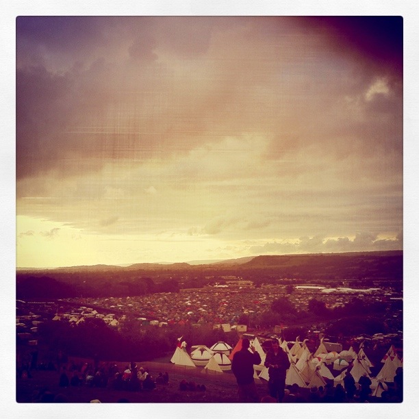 A skinny fellow carrying a crisp, scrunched up plastic bag full of chocolate bars pads out onto a tiny stage on the tip on a Somerset hill. He pauses, throws a Twix out into an ocean of raised arms, looks over his glasses at the wide-eyed awe before him and whispers, “Do you remember the first time?”