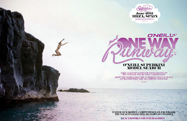 If you wanna be in their Summer 2012 campaing, upload a picture of you in airtime to facebook.com/oneillgirls between April 1st and May 15th (entrants have to be at least 18 years old). Twelve finalists will be chosen from there and flown to Ibiza in June to walk the One Way Runway in front of a panel of judges, including supermodel Elyse Taylor, professional O’Neill surfer Raine Jackson and top fashion editors and stylists. The winner of this will then be taken on a photo shoot on a secret beach location in September 2011 to star in the Spring Summer 2012 campaign.