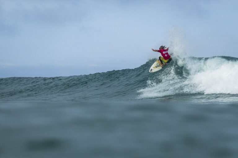 Tyler Wright and local ripper Courtney Conlogue (also both still in the title mix) will face off in the other semi. Tune in tomorrow here. Go Pauline! Go France!