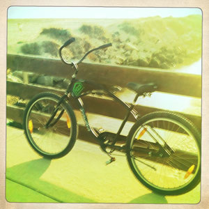 As well as watching a lot of spectacular surfing I was lucky enough to have a beginners surf lesson (on the small waves handily placed right next door to Supertubos) which was great as we got to use all the new Rip Curl wetsuits and boards… all the gear and no idea. I also rented this low-slung cruiser and had a good explore all over town.