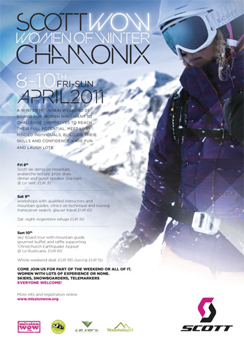 Join SCOTT WOW in Chamonix, France,from 8th-10th of April 2011, to enjoy a unique weekend adventure where you can challenge yourself, build up skills and confidence and meet like-minded girls to fun with in the mountains.