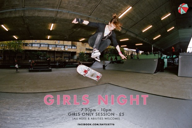 Back at the start of March we headed Bay Sixty 6’s way on a Friday evening for the first ever Girls Only night. It was a brilliant evening with a great turnout of skaters old and new. Tonight it’s back for take two! From 7.30-10pm it’s girls only in the park. Check out what we went on at the last session as captured for us by Brits On Board.