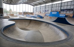 And finally in West London, Ealing Skate Park has just been finished. Situated next to the Gurnell Leisure Centre, the park is home to a bowl, street course and mimiramp. The mini though is slightly different to your regular ramp – it’s been set with pool coping Lucy – different materials are good so long as they’re used in a practical way and not just novelty value. With pool coping, its often the case when designing a whippy transition that it has that pool feel; therefore why not put pool coping on it!