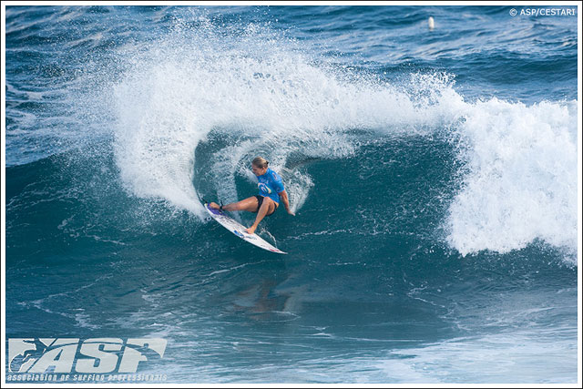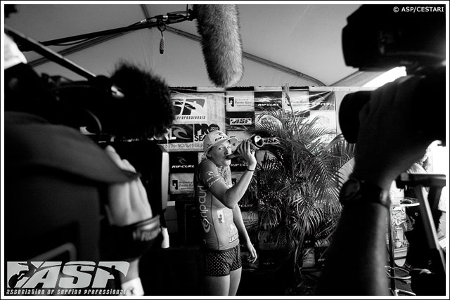 Her Quarterfinal win over Melanie Bartels (HAW), 28 gave her enough points to knock sole remaining contender Sally Fitzgibbons (AUS), 19, out of the race for the 2010 ASP Women’s World Title Race even before the last events.