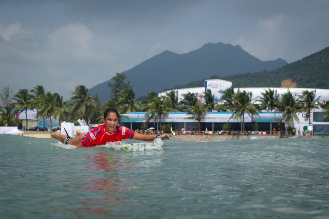 Meanwhile Kassia Meador was mega-into the vibe of the local surf community at Hainan. She said, “Being a traveling surfer isn’t just about contests. It’s also about meeting people, sharing their culture and of course sharing waves. The local surfers here have been so stoked, it’s infectious. They’re getting really into surfing, it’s not gonna be long before there’s all kinds of local rippers out here, and that’s really exciting. If kids get inspired by seeing us here, and then get into being out in the ocean and surfing, then that’s all the reward I’ll ever need.”