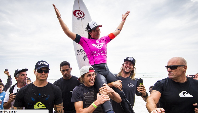Tyler Wright just won the Roxy Pro France and now the 2014 ASP Women’s Title Race is looking hotter than the devil’s toenails. Tyler Wright beat fresh-back-from-injury Courtney Conlogue in sick swell at Les Gardians, France, delivering a performance of such near perfect awesomeness that the judges awarded her 19.20 of a possible 20.