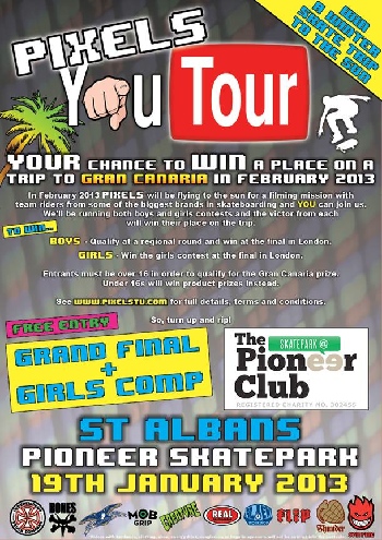 It’s going to take place at St Albans, Pioneer Skatepark on January 19th 2013 now instead of Bay66 and will begin at 12pm – see the new flyer on the right more info!