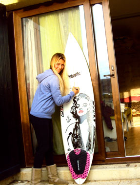 Volcom’s new team surfer Maud Le Car has very kindly offered up a surfboard complete with her own Marilyn Monroe-penned graphic to the Sumatran Orangutan Society for their Jungle VIP Auction which runs until tomorrow.