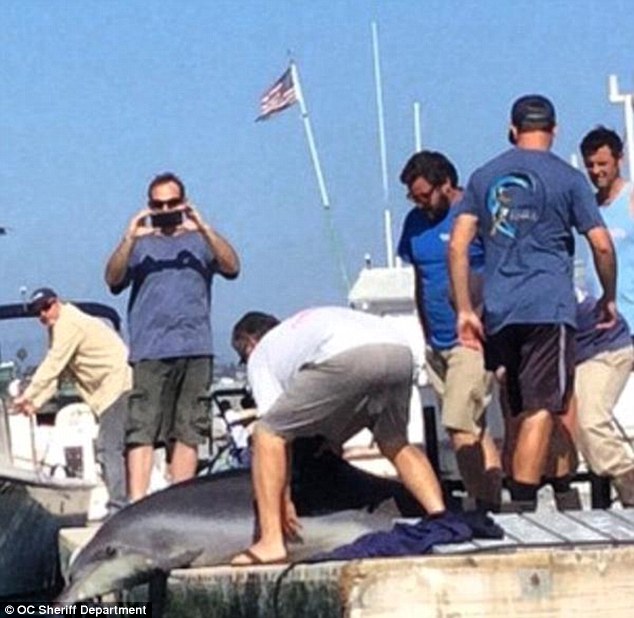 They hauled the dolphin out of the boat using ropes and chairs as levers, while Chrissie was sent to A&E.