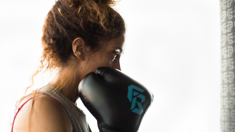 Inside Flagboxing gym, the only thing covering women's faces are their boxing gloves