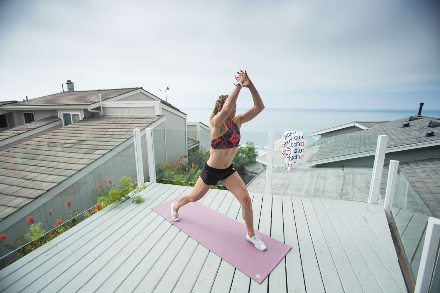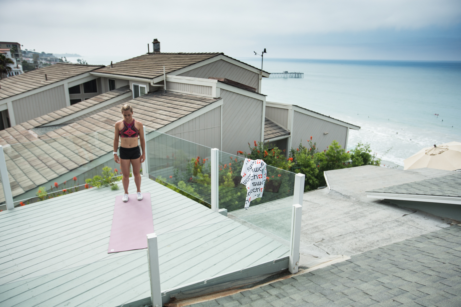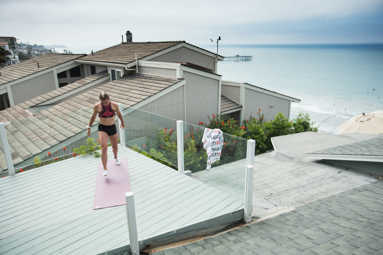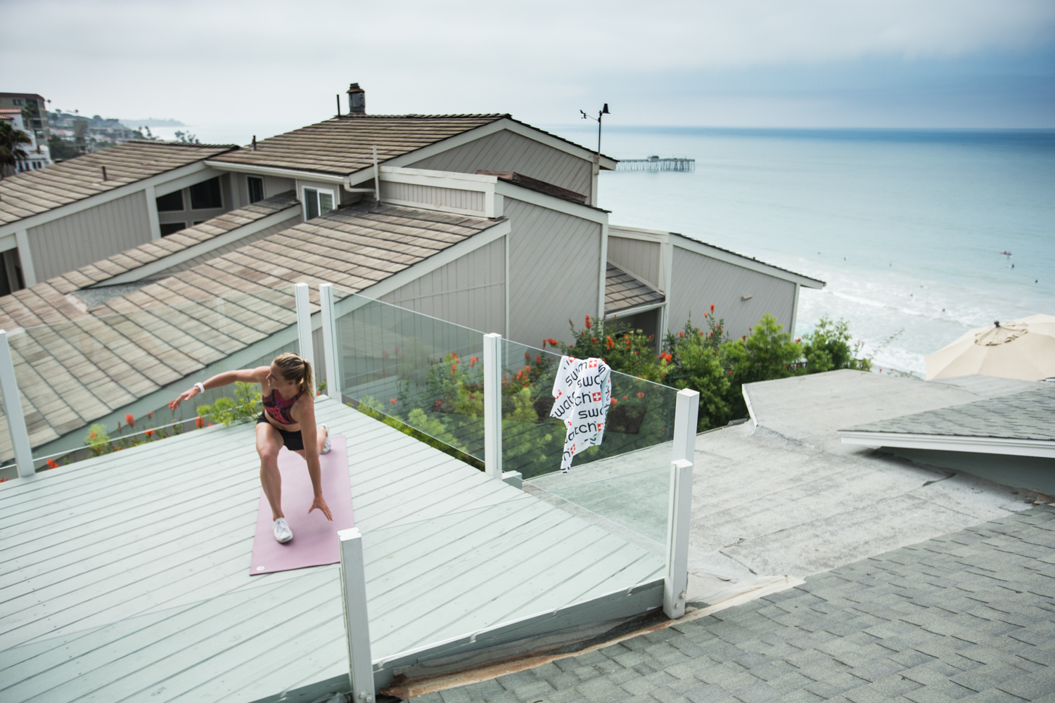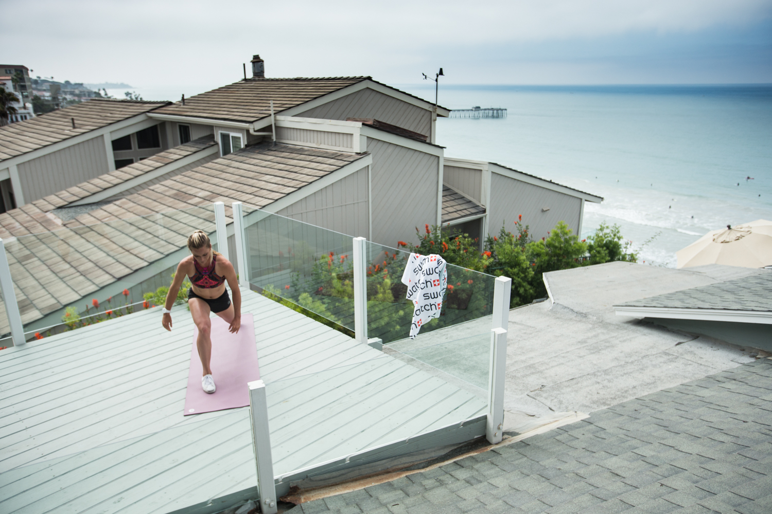 “My training is very functional,” Courtney told us. “Surfing is very rotational, but before starting anything rotational you want to get your heart rate up and warm up your muscles, so you start off with running. The exercises definitely work your core, your arms and your legs.”