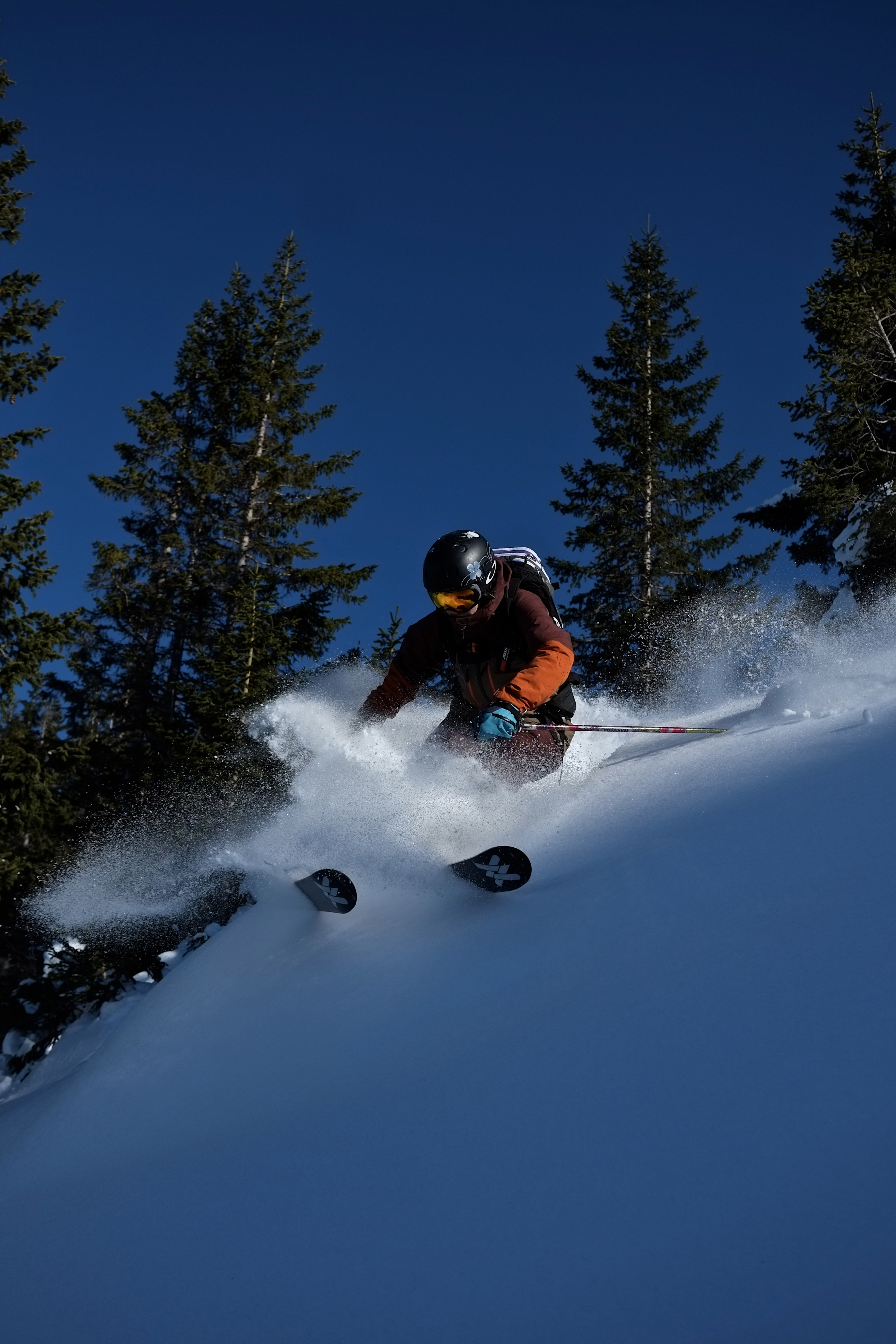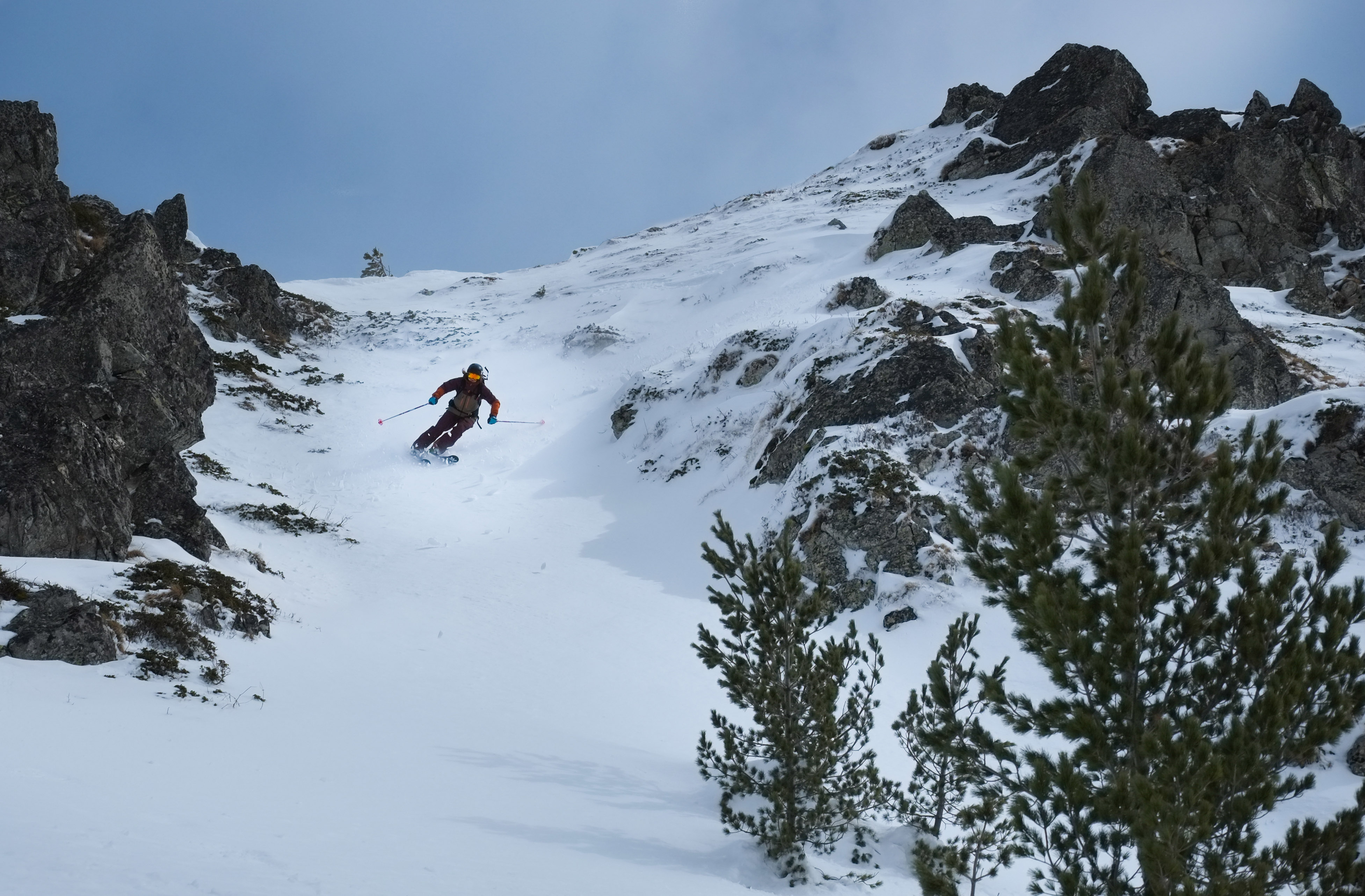 We hiked across sparse whiteout ridge-lines and beneath giant black pine trees, shaped over the years by wind and lightning. One morning we set out in winds gusting 100km/h only to realise we could hardly stand, let alone ski.