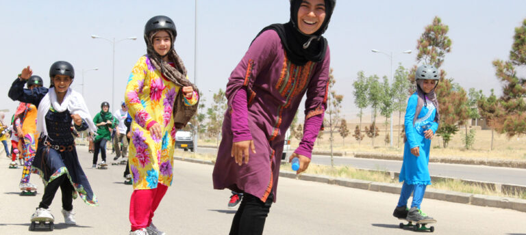 Women in Afghanistan aren't allowed to ride bikes, but they can skate....