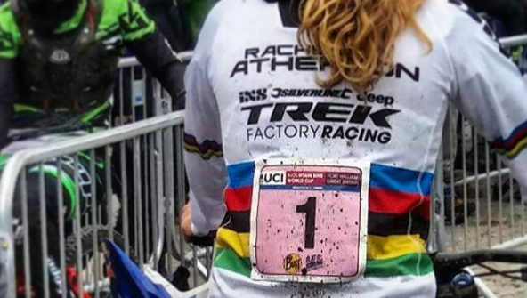 Rachel Atherton’s World-Cup winning streak has ended at 14 races after a dislocated shoulder in practise prevented her from competing in the finals of the Fort William World Cup – and Australian Tracey Hannah took the win.