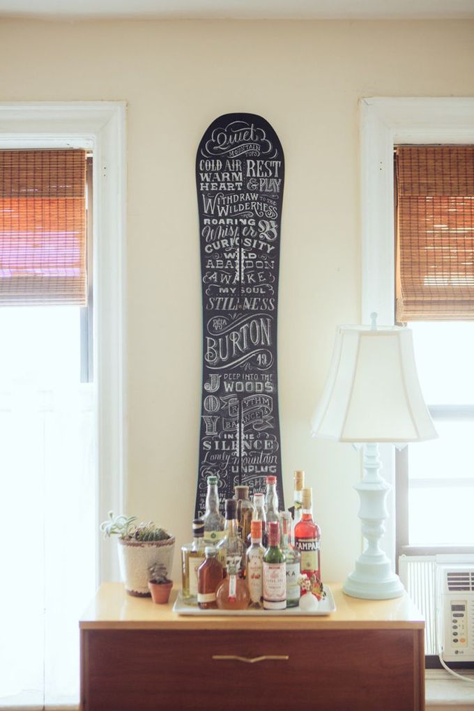 This isn’t a functioning snowboard, but we like how it’s been turned into a piece of wall art.