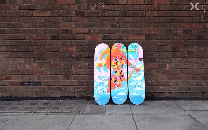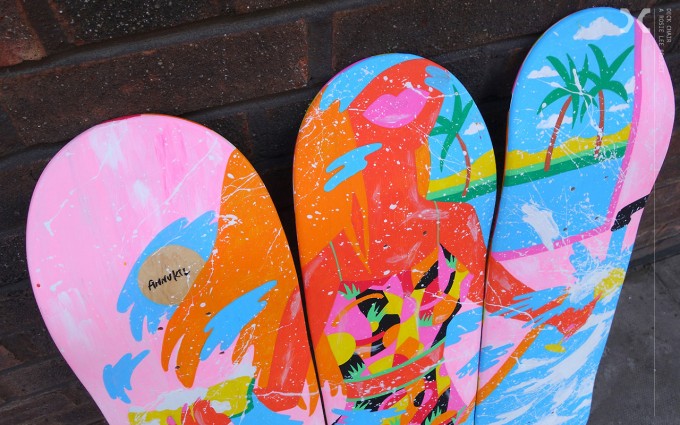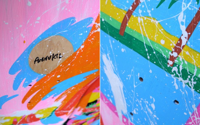 At Cooler we love catching up with our ‘Mia Meets…’ girls and keeping track of all the rad projects that they get up to. Today we get to have a look at some amazing skate boards that Annu Kilpeläinen has put her magical skills to. We adored her work previously this year, all of the abstract patterns and seriously funky colours, it was like getting a slice of summer early. Annu recently collaborated with Rosie Lee for the project Deck Chair to produce some fantastic fresh and tropical designs, check out the finished boards below: