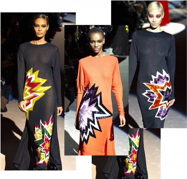 Even though we’re currently saving up for an autumn/winter 14 Dolce & Gabbana crown to casually wear in the office (and in bed and generally for the rest of our lives), we’re not the biggest high fashion bunnies in the world. We couldn’t help but notice how Tom Ford, the super slick ex-Gucci guy who now kind of does everything including movies, was inspired by cartoons for his winter collection. You don’t see massive KA-POWs on evening dresses every day. The dresses are way too expensive for us (especially since all our savings will be invested into above mentioned crown) so we thought we’d go to the Roy Lichtenstein retrospective at the Tate Modern instead. Lots of cartoony stuff there too, and it’s not just fashion, it’s art. Might even get a poster, who knows, cheaper than evening wear but very similar looking, see below…