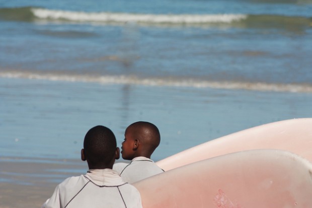 As soon as I had made the decision to travel, I started to come up with ideas. I contacted fashion designers in Berlin to put together outfits I wanted to shoot. At the same time I knew I definitely wanted to take surfing pictures. I thought about social projects, too. For many years I’d wanted to photograph surfing as part of a social project. And then I met the head of Muizenberg Beachclub, a really nice guy, drinking his morning coffee. At that point I didn’t know who he was and I asked him what he did in life. He told me he organised surfing classes for kids from the townships. With sparkling eyes I asked him if I could take pictures of this and he was really enthusiastic.